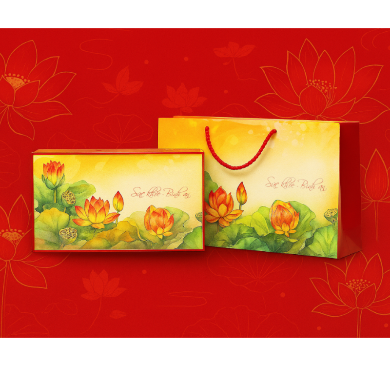 Hộp Quà Hoa Sen Đỏ là món quà lý tưởng cho người thân, đối tác hay khách hàng – một lựa chọn vừa đẹp, vừa mang ý nghĩa sâu sắc về an lành, may mắn và thịnh vượng đầu năm.